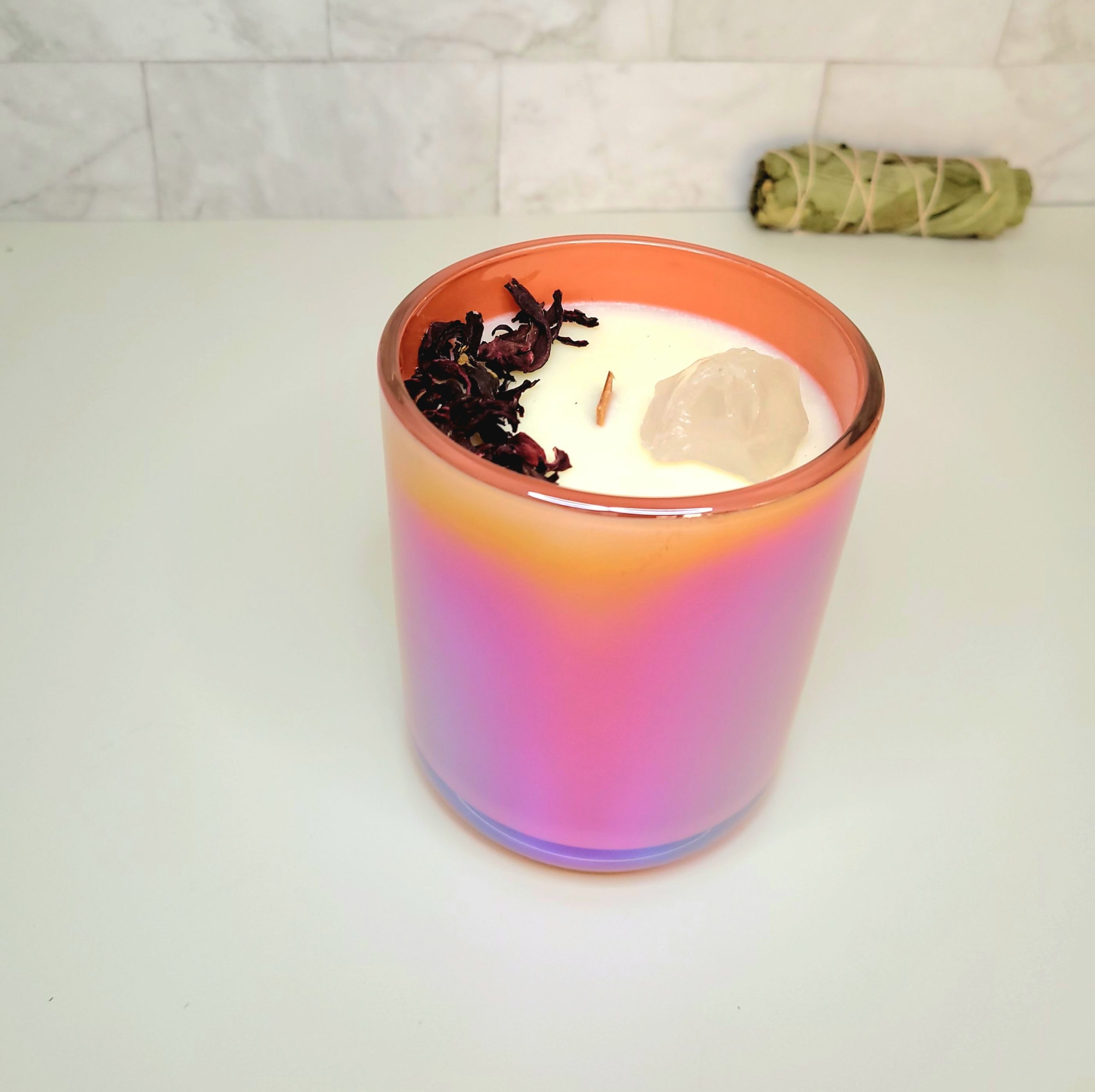 Our Intention Candles are spiritual tools crafted to align your energy with your desires. Each candle is infused with dried herbs, essential oils, and crystals corresponding to specific intentions, such as love, protection, abundance, and purification. These candles are not just decorative pieces; they are energetic conduits designed to help you manifest your goals and transmute stagnant vibrations into radiant possibility.